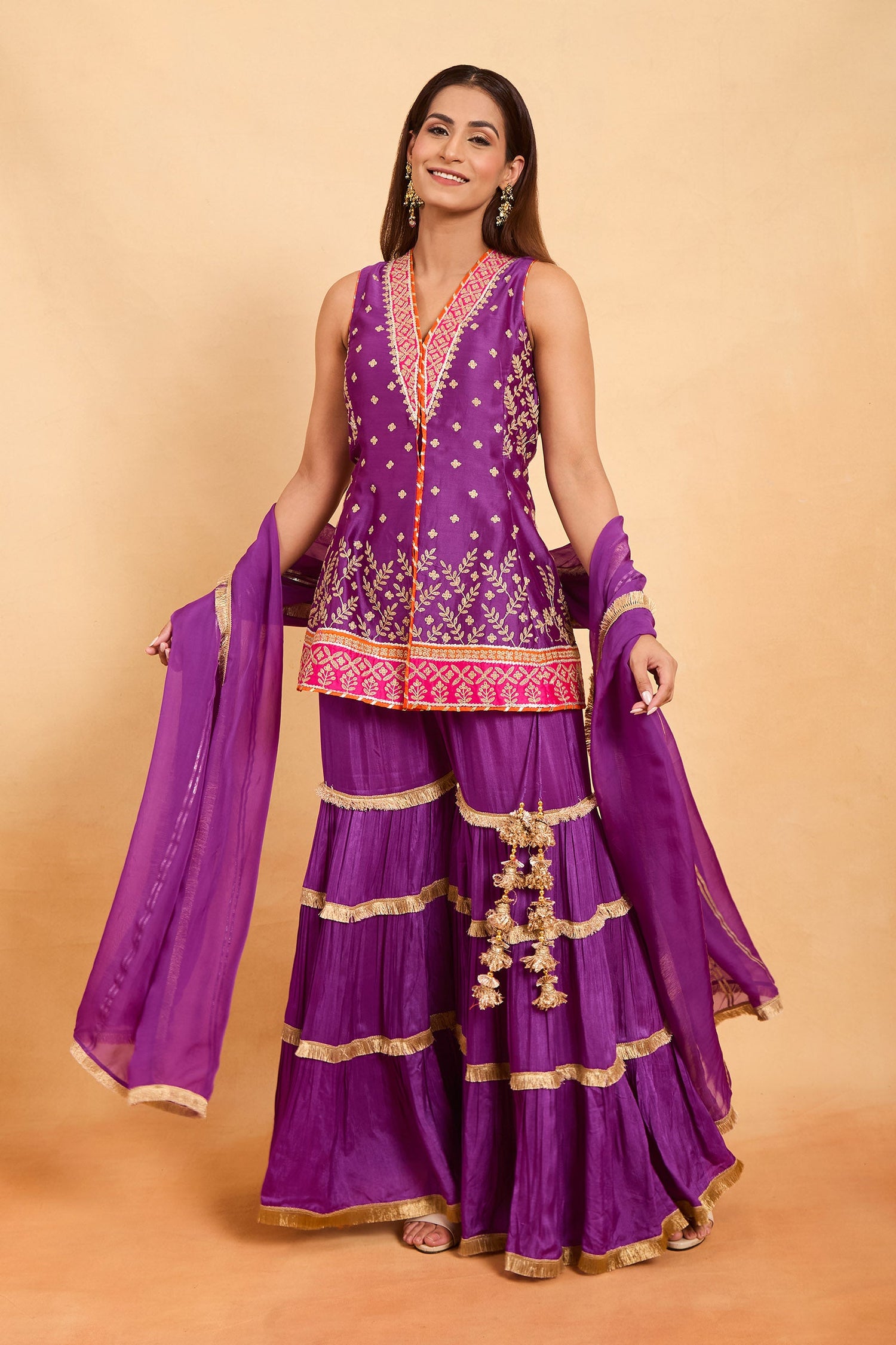 Magenta Angrakha Peplum Kurti & Gharara Set