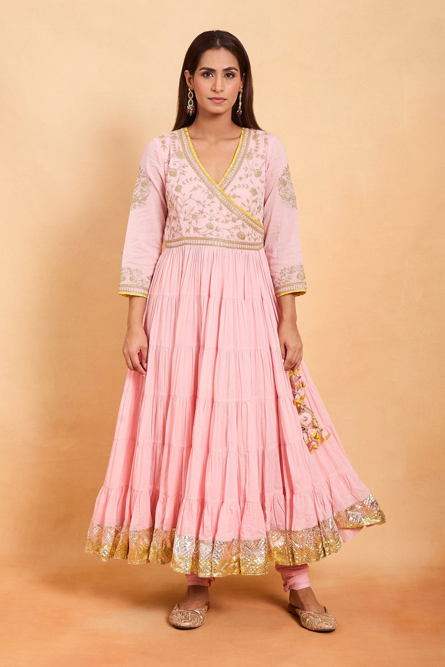 Designer Fuchsia Pink Kurti with Tiered Orange Gharara Suit Set