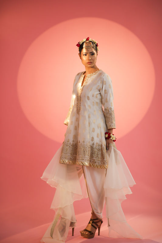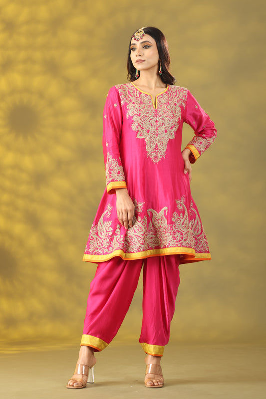 Pink Angrakha Style Anarkali Set with Gold Embroidery