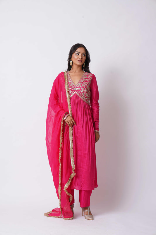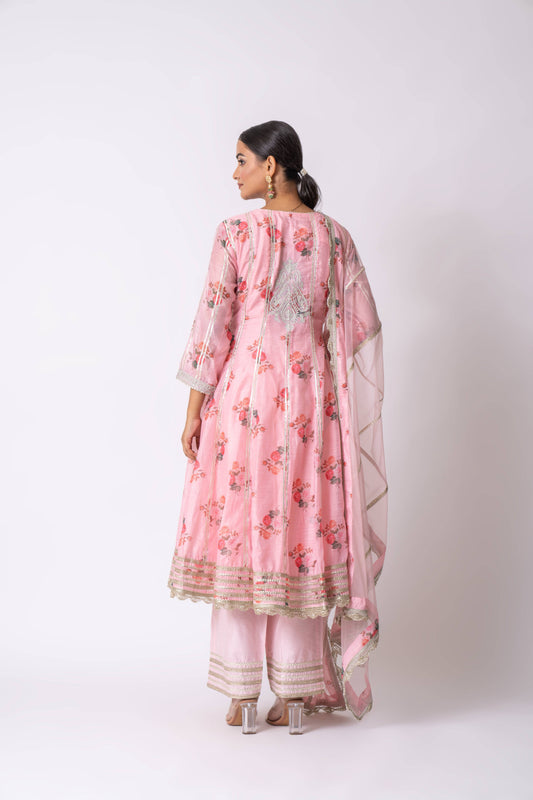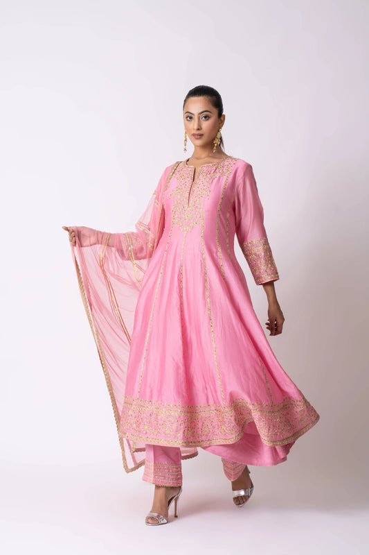 Rose Pink Chanderi Sequins Embroidered Anarkali Set