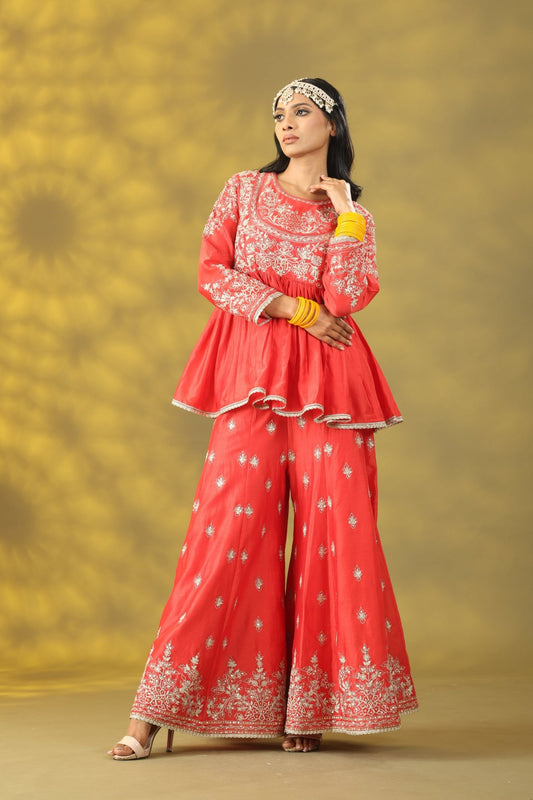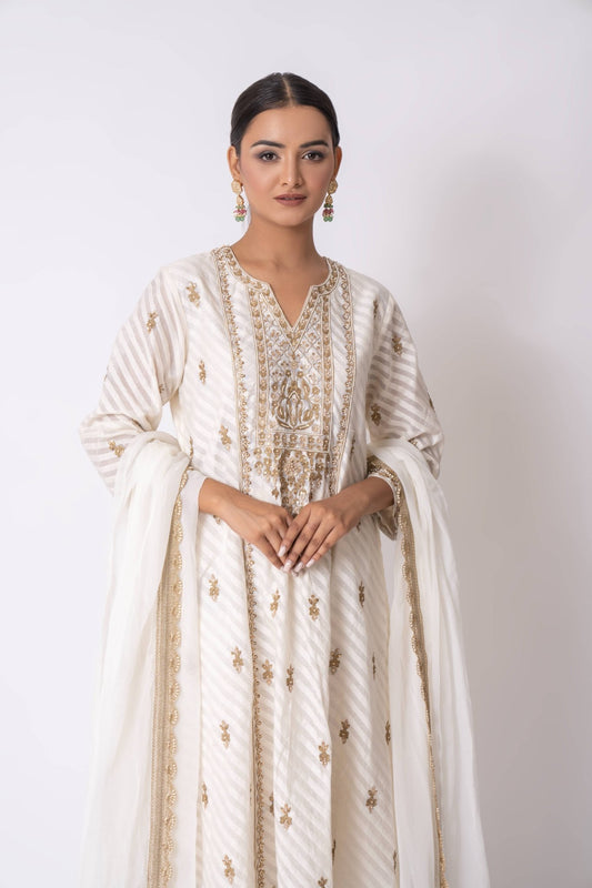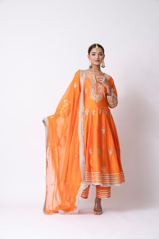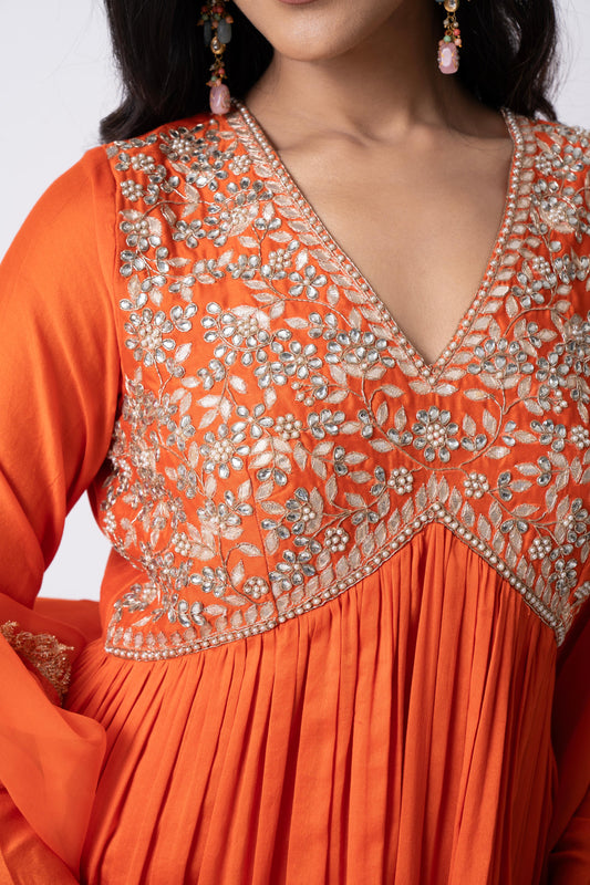 Orange Embellished Anarkali With Palazzo And Dupatta (Set of 3)