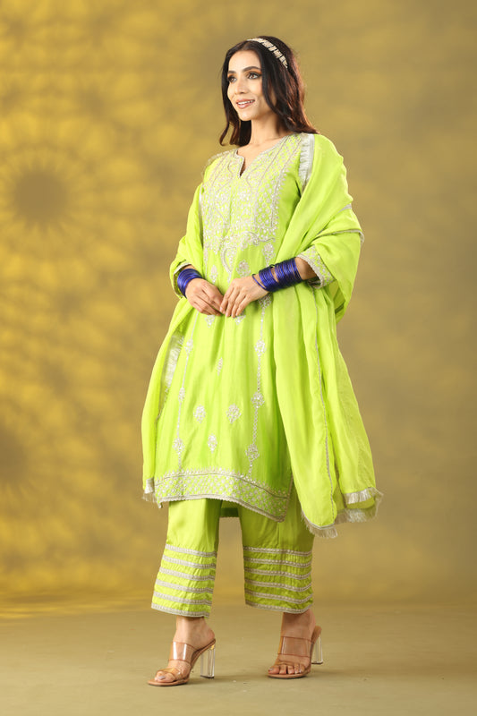 Salime Green Kurta with Pant and Dupatta