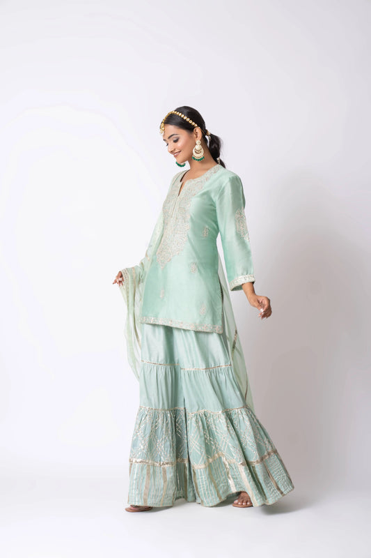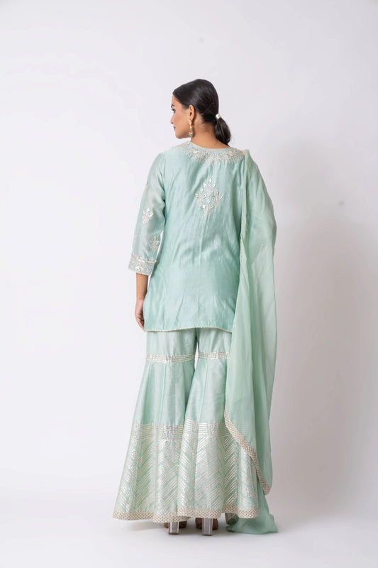 Sea Green Banarasi Katan Silk Gota Embroidered Gharara Set