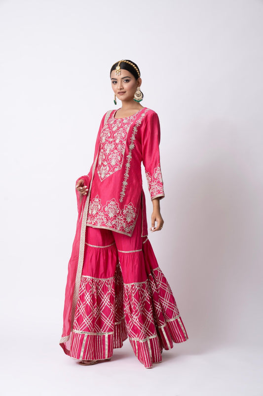 Hot Pink Nakshi Gota Embellished Kurta With Gota Pati Gharara and Dupatta (Set of 3)