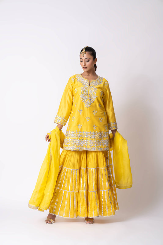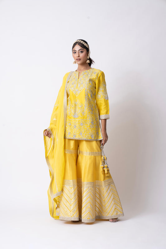 Yellow Chanderi Silk Gota Embroidered Gharara Set