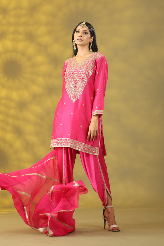 Megenta Short kurti with Dhoti Pant along with Dupatta